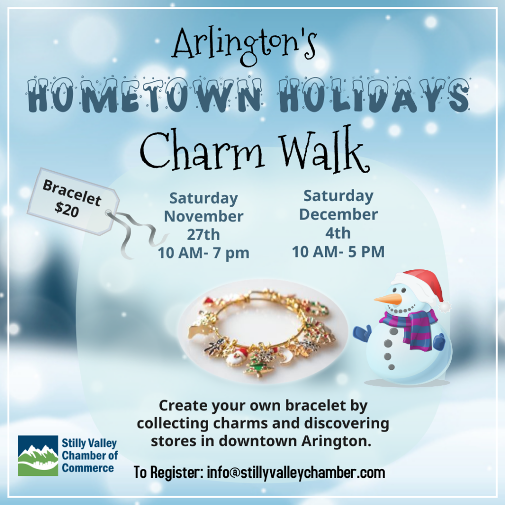 To purchase go to https://www.cognitoforms.com/StillyValleyChamberOfCommerce/_2025ArlingtonHometownHolidaysCharmWalkBraceletOrderForm
