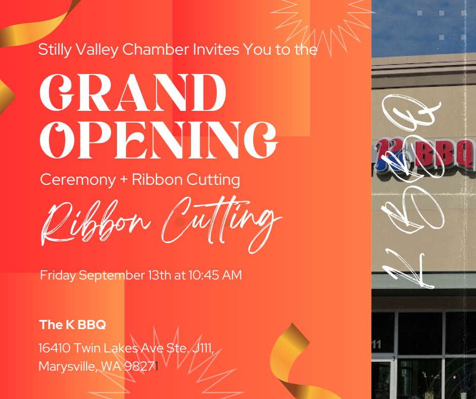 Help us celebrate the ribbon cutting of the K BBQ in Smokey Point on the 13th at 10:45.