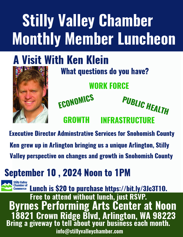 Our businesses and community members are welcome to join us as we talk with Executive Director for Administrative Services For Snohomish County Ken Klein.