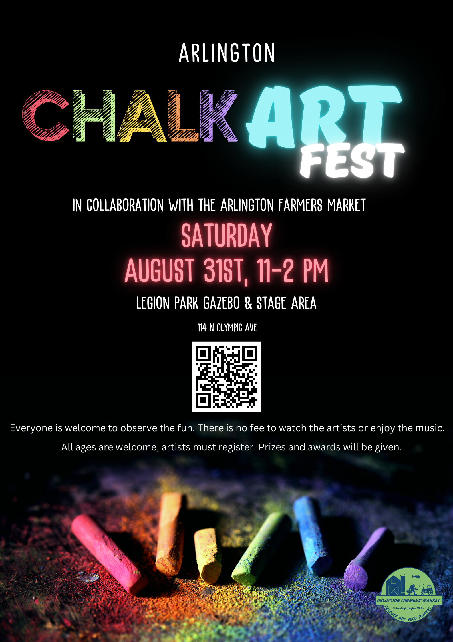 Arlington Farmers Market Saturday and Chalk Fest 10 AM to 2 PM
